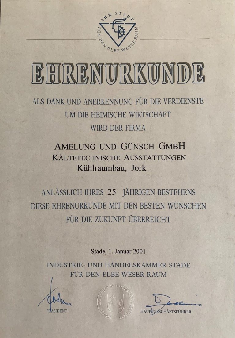 Nach 25 erfolgreichen Jahren, im Jahr 2001, feierte die Amelung und Günsch GmbH ihr Jubiläum. Dieses Ereignis wurde nicht nur als Meilenstein in der Firmengeschichte gewertet, sondern auch als eine Gelegenheit, die treuen Kunden und Mitarbeiter zu ehren, die zum Wachstum und Erfolg des Unternehmens beigetragen hatten.